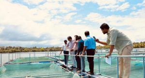 To assess the progress of plan schemes a delegation led by Prof. V. K. Ramachandran, Vice Chairperson, Kerala State Planning Board, accompanied by Sri. S. S. Nagesh, Chief, Agriculture Division visited the Palaikari fish farm on 25 August 2022. Palaikari fish farm situated in Kattikkunnu in Chembu village on the Vaikom-Ernakulam route is like a tiny island on the Vembanad. The team visited and observed the scientific farming of Vannamei shrimp and examined its growth, nursery rearing of Chanos (Milk fish), and cage culture of pearl spot and GIFT, and sea bass farming in Parabola pen. The delegation enquired on various aspects of aquaculture practices in the farm and the experts of Matsyafed led by DGM clarified the doubts and detailed the activities of the farm.